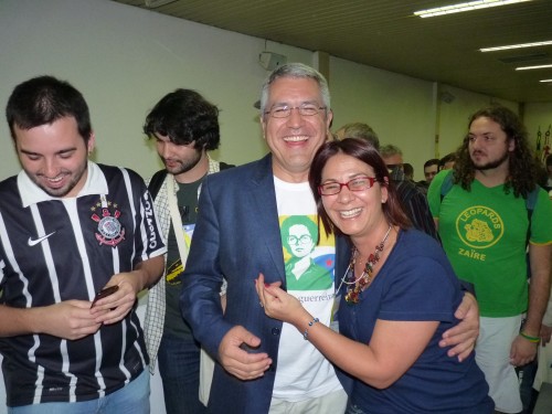 O ministro das Relações Institucionais, Alexandre Padilha, viu o encerramento do encontro (na foto, com Conceição Oliveira, do Maria Frô, a quem conheceu no twitter).